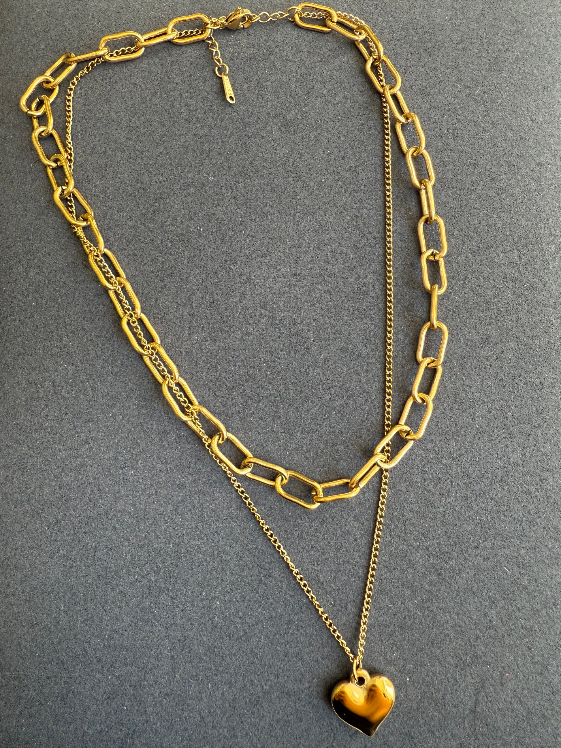 Este collar corazón destaca por su eslabón grande, que aporta un diseño robusto y elegante. Perfecto para quienes buscan una pieza con presencia y estilo, combina la delicadeza del motivo de corazón con la fuerza de un eslabón más ancho, asegurando durabilidad y un acabado sofisticado. Ideal para complementar cualquier look con un toque moderno y distintivo.