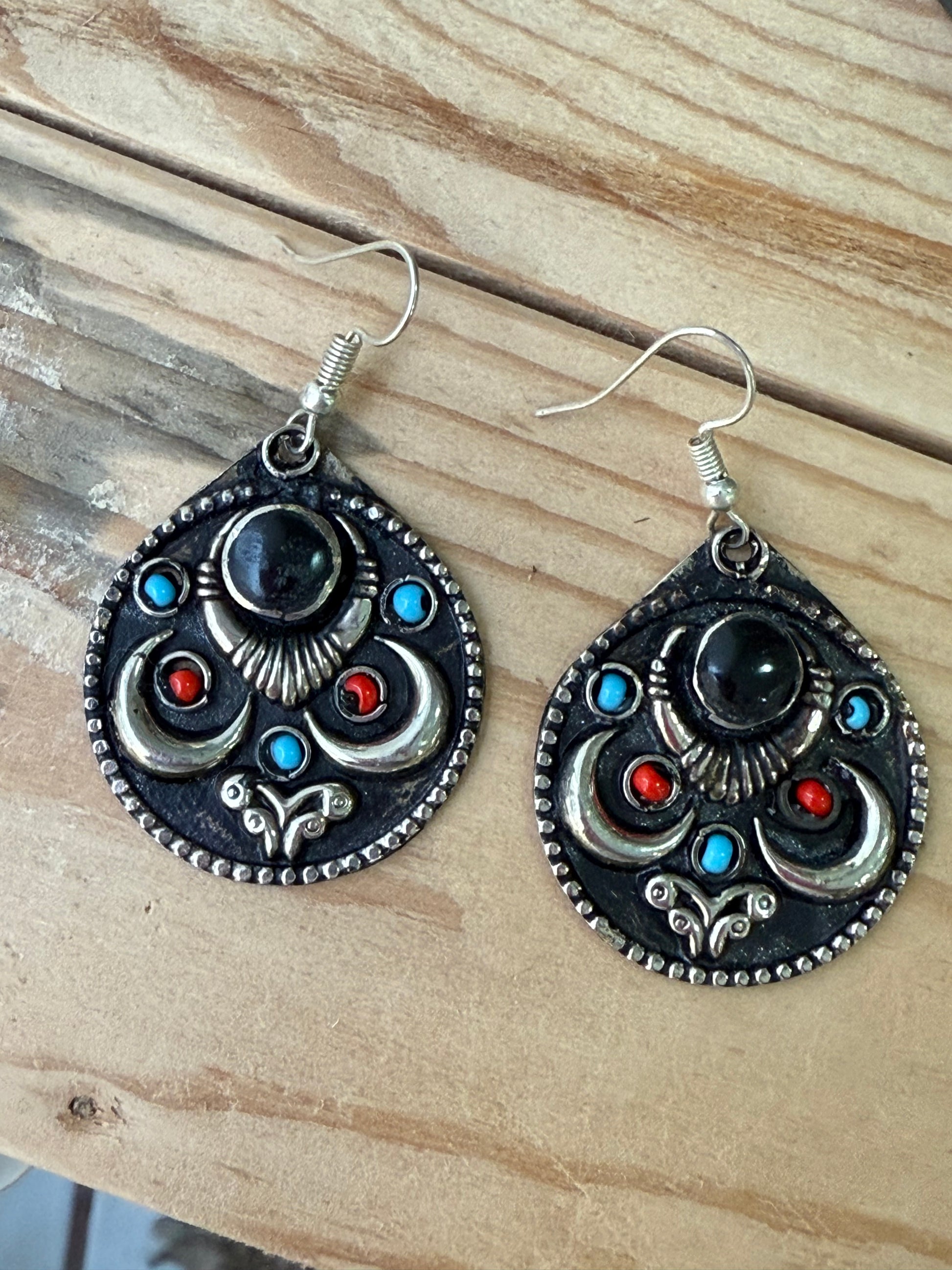 PENDIENTES DE ACERO CON PIEDRAS DE ONIX, Y TURQUESIA ROJO Y VERDE